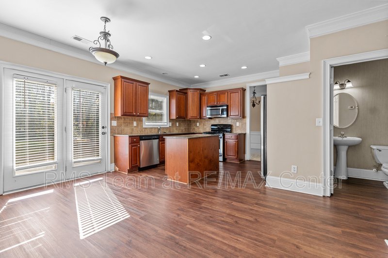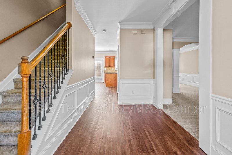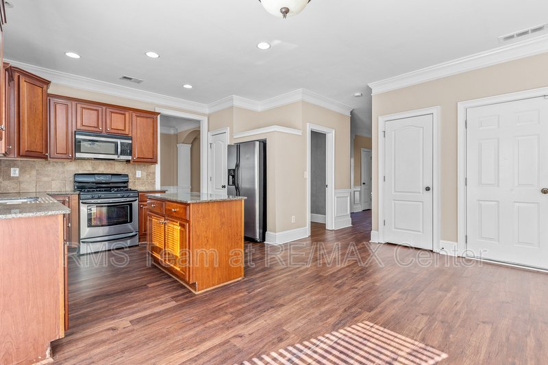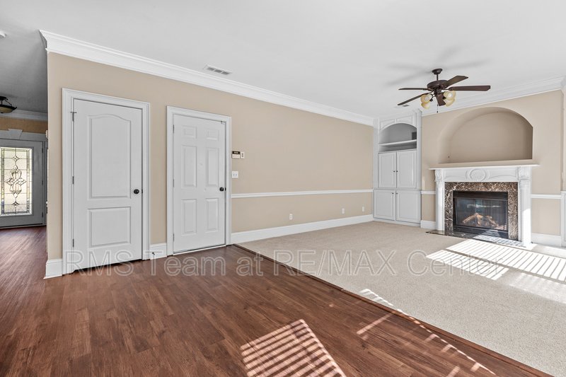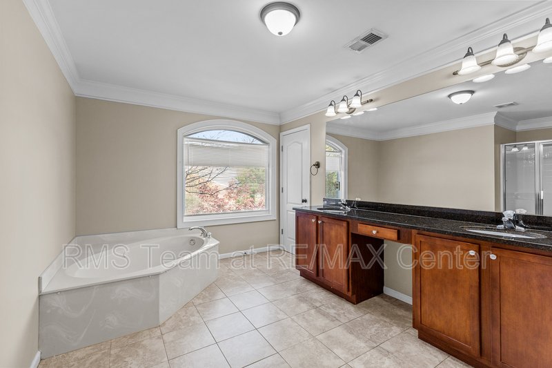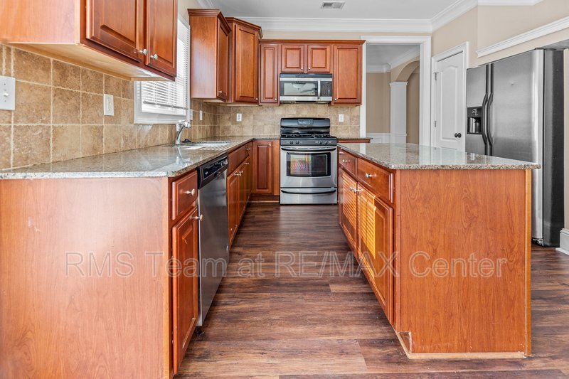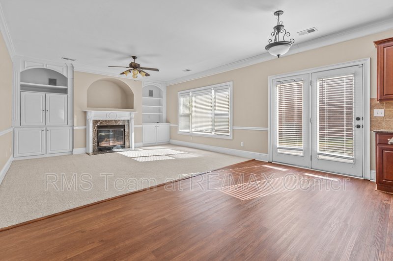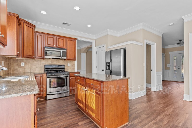 Available for immediate move-in, this spacious home features a hardwood entry foyer, separate Living Room, separate Dining Room, Family Room with gas log fireplace, built-in bookshelves and surround sound speakers, eat-in Kitchen with island, stained cabinets, tile back splash, hardwood floors has gas range, dishwasher, microwave and side by side refrigerator. Master Suite has trey ceiling, HUGE walk-in closet, double vanity, garden tub and separate shower. *Additional $40.00 per Month Resident Benefits Package includes rental insurance & more